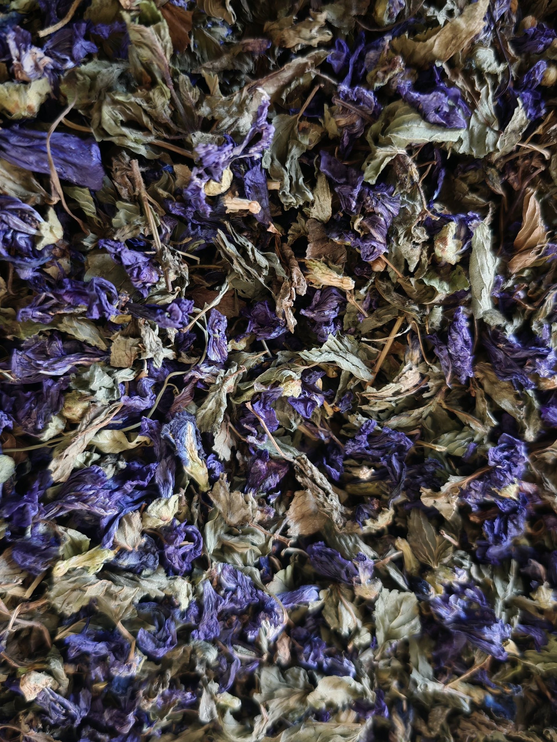 Calme tout en boostant : le pois bleu équilibre le système nerveux, tandis que la menthe stimule doucement.